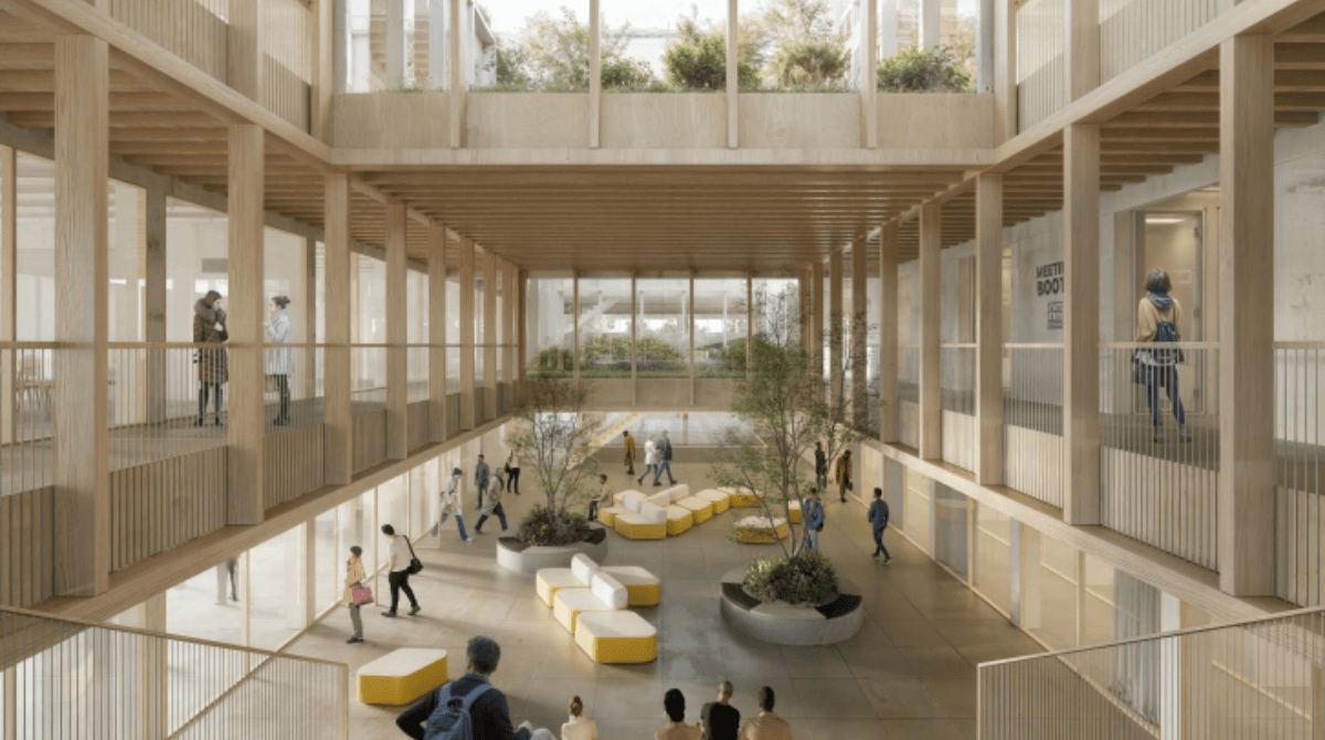 El futuro edificio de Formación Profesional digital de Zaragoza ya tiene proyecto: ‘Ágora Verde’, una propuesta del estudio Magén Arquitectos que ha sido seleccionada para formar parte del nuevo Distrito Aragonés de Tecnología (DAT) Alierta, en el campus universitario Río Ebro. El jurado del concurso ha valorado especialmente la organización clara del espacio, el uso de la madera en el atrio central y la luz natural como elemento estructurador del edificio. El conjunto se articula en torno a un patio escalonado que conecta visual y funcionalmente los diferentes niveles, rodeado por una crujía perimetral con vistas a cubiertas ajardinadas.