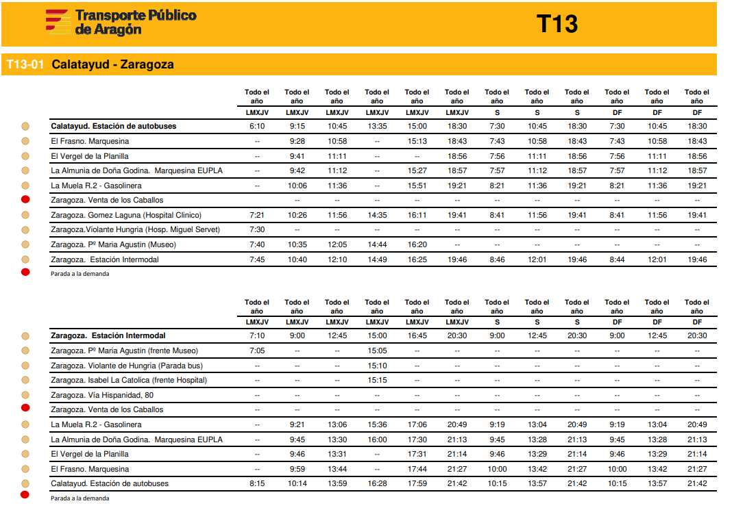 Puedes comprar AQUÍ el billete para el servicio. En Fiestas del Pilar, Navidad, Semana Santa o en verano consultar en la web de Monbus los servicios especiales.