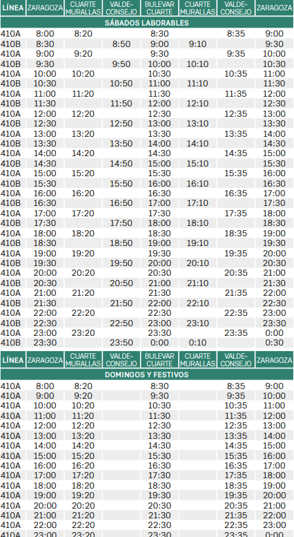 Frecuencias y horarios del bus a Cuarte de Huerva en sábados, domingos y festivos: