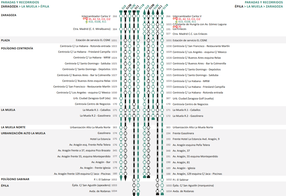 Recorrido, paradas y enlaces de la línea 510 de Zaragoza a La Muela: