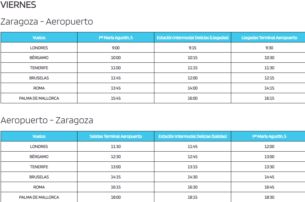 Horarios de la línea de autobús de Zaragoza al Aeropuerto de Zaragoza