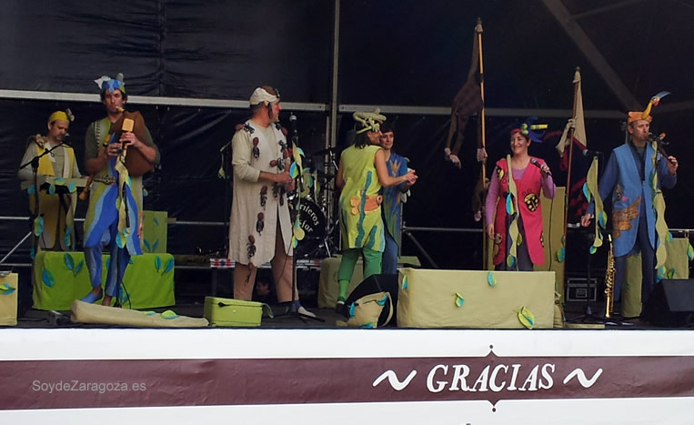 En el escenario junto a la fuente de Goya el espectáculo y la música atraían la atención de los más pequeños.