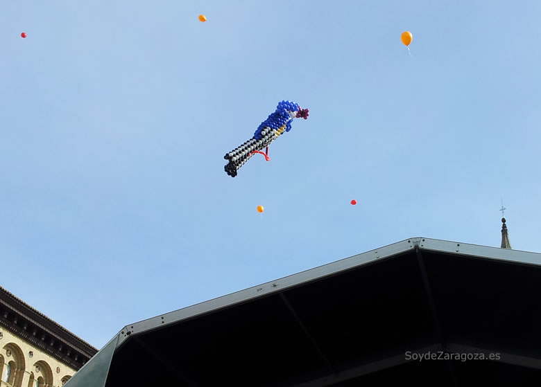 Y otro globo más pequeño llevaba a su pasajero por toda la plaza.