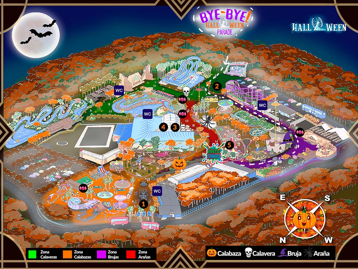 A continuación puedes ver mapa con toda las ubicaciones clave durante este Halloween 2025 en el Parque de Atracciones.