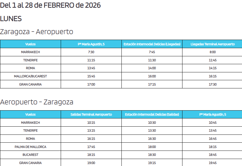 *Tambien te puede interesar: FIESTA POP REMEMBER DE LOS 80s y 90s EN ZARAGOZAHorarios del bus al Aeropuerto de Zaragoza para el mes de FEBRERO de 2026: consulta los diferentes días, a continuación, con el horario para cada vuelo