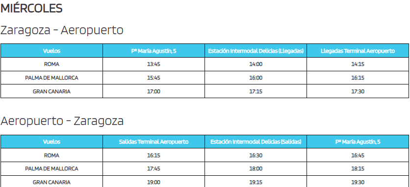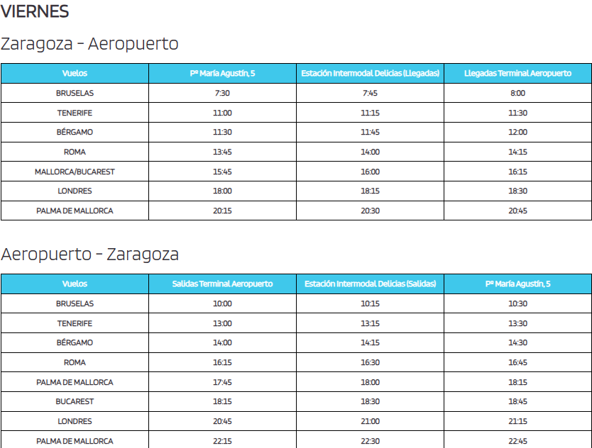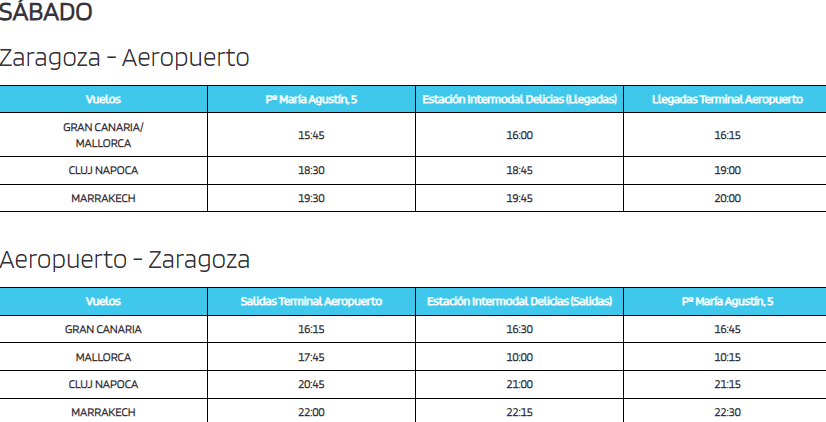 Horarios de la línea de autobús de Zaragoza al Aeropuerto de Zaragoza