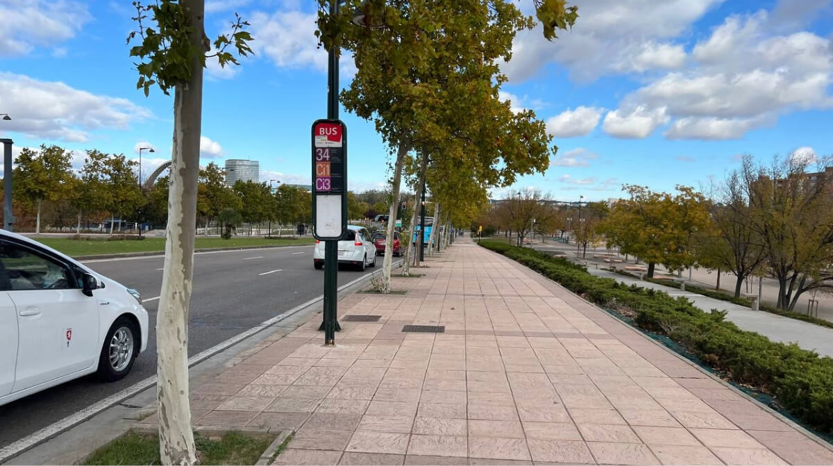 El usuario puede coger o bajarse de las líneas de autobús 34, Ci1 o Ci3 (el 51 no para, ya que ha dado la vuelta previamente dirección estación Delicias), en un punto donde la movilidad peatonal es “compleja” por los grandes viarios de entrada a la ciudad y la importante distancia entre pasos de peatones.