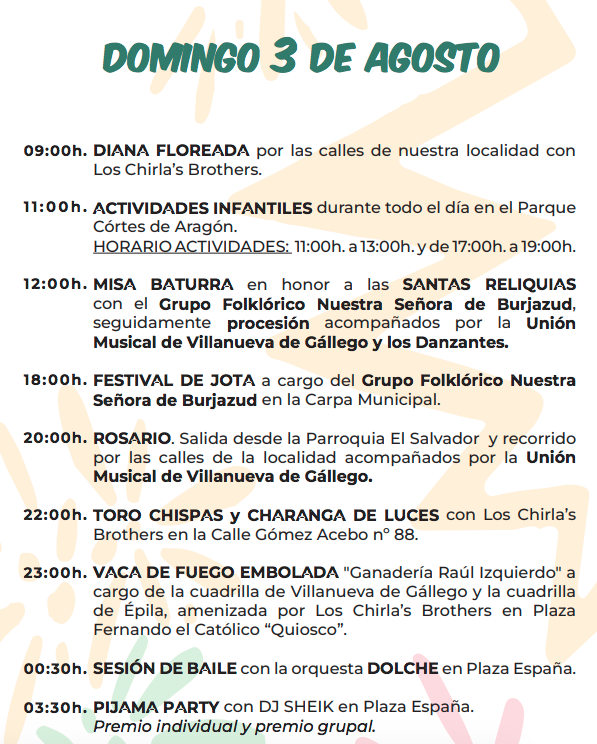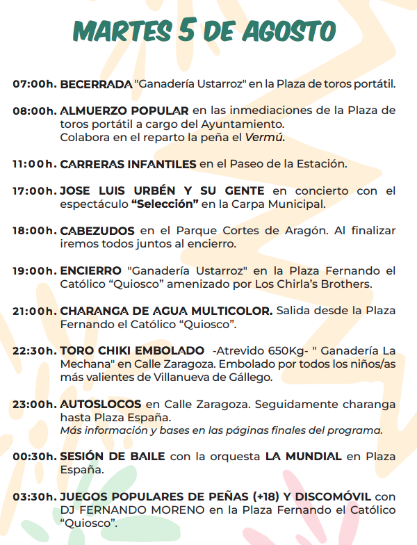 Programa de fiestas de Villanueva de Gállego 2025 en Zaragoza