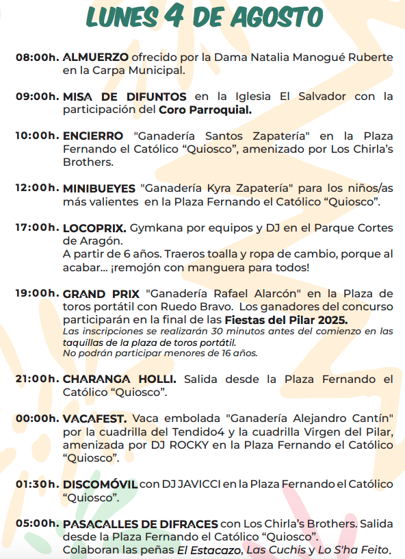 Estos son todos los actos dentro del programa de fiestas de Villanueva de Gállego 2025